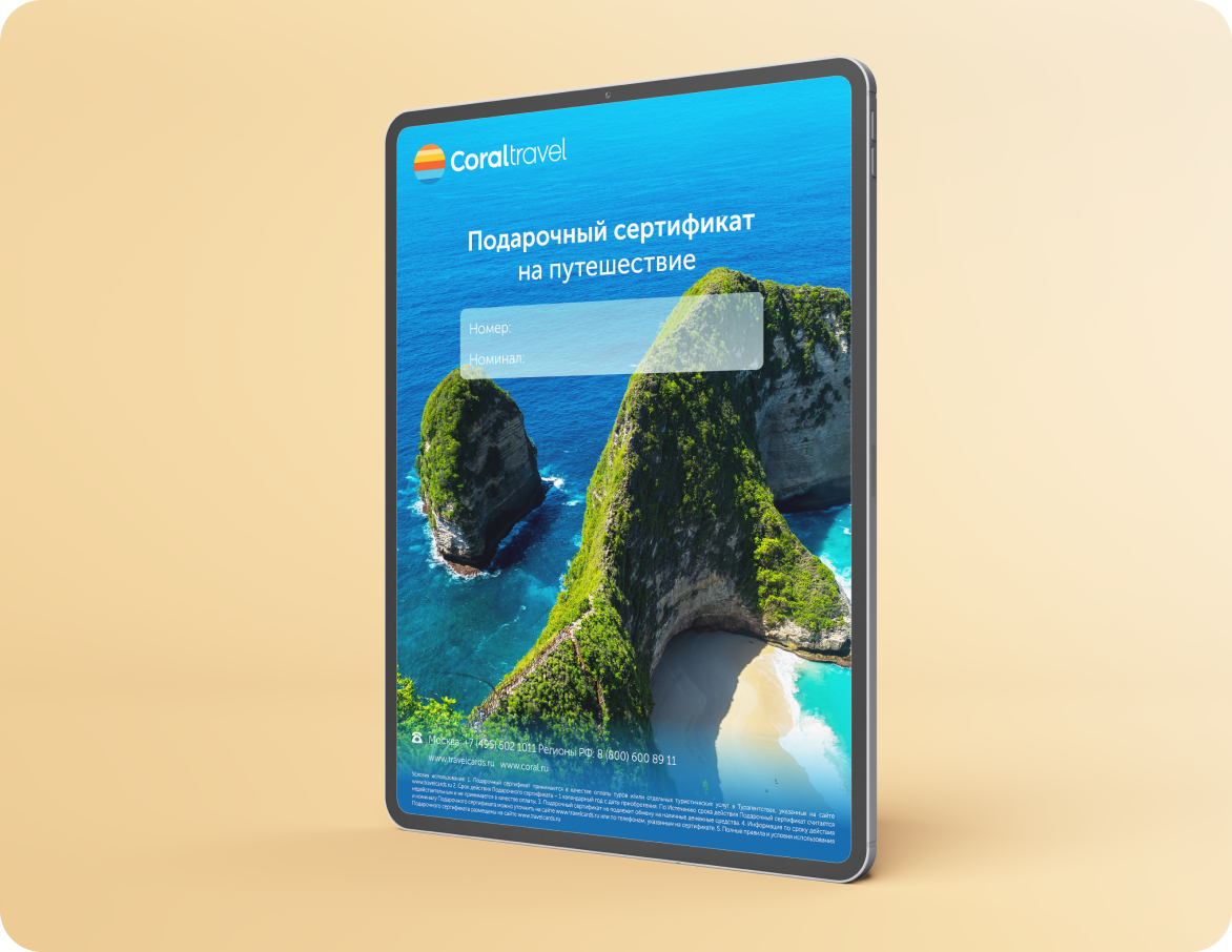 Электронный подарочный Сертификат принимается в качестве полной или частичной оплаты туров On-Line на сайте www.coral.ru , а также в офисах, размещенных на данном портале, в разделе «Офисы продаж и приема»