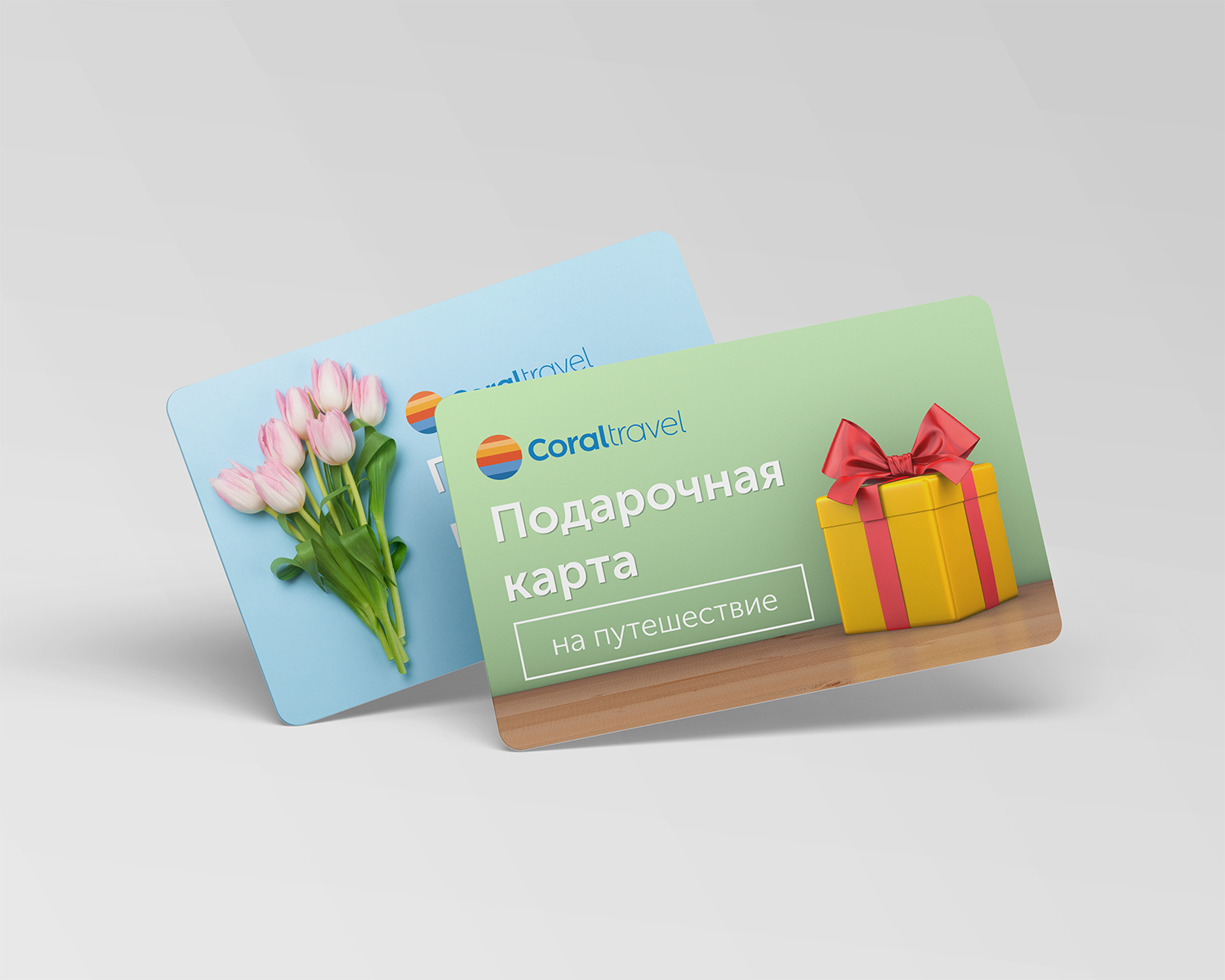 Сделайте подарок единственным и неповторимым с помощью уникального дизайна Подарочной карты на путешествие Coral Travel.